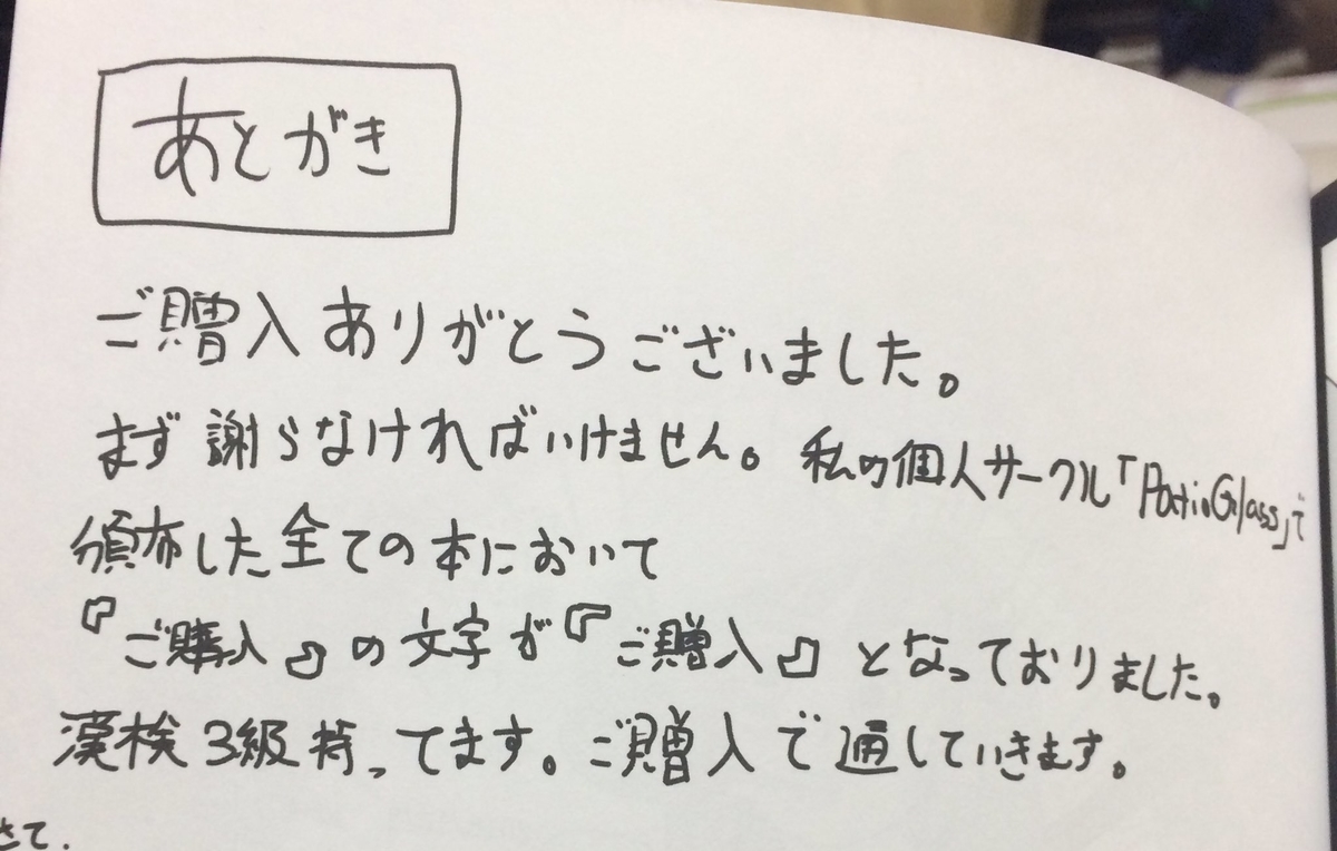 友人「なんかぱちおさん、これ・・・あとがきなんて読むんですかね」